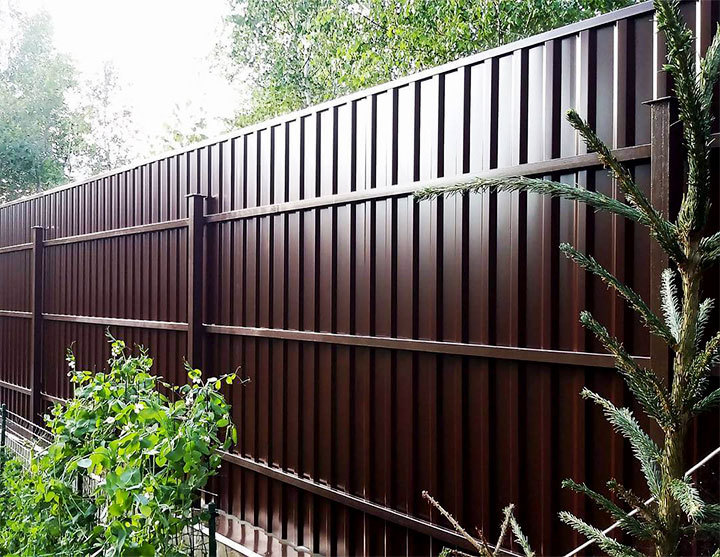 Какой бы профнастил вы ни выбрали, его толщина должна быть не менее 0,35 мм. Лучше — больше. Только тогда забор сможет противостоять серьезным ветровым нагрузкам, ведь у профнастила достаточно высокая парусность. Еще стоит отметить, что конкретно для заборного профлиста тоже есть своя маркировка: