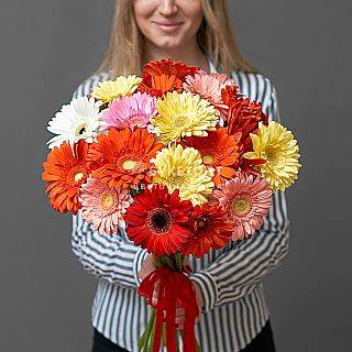 Герберы — это красивые и яркие цветы, которые люди любят за их яркость, разнообразие цветов и форм, за то, что они могут радовать своим видом длительное время. Герберы могут быть использованы для создания букетов и композиций на любой вкус и цвет, начиная от классических красных, белых и розовых цветов до более экзотических и необычных, оранжевых, желтых или пурпурных. Герберы часто ассоциируются с солнечным настроением и позитивными эмоциями, что делает их привлекательным выбором для подарка близким и друзьям на любой случай.