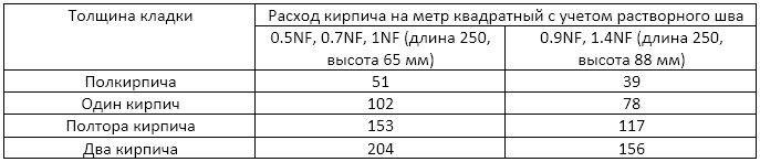 - Умножим получившийся результат на усредненный расход кирпича из вышеуказанной таблицы: 144.56х51=7373 (с округлением) кирпича.