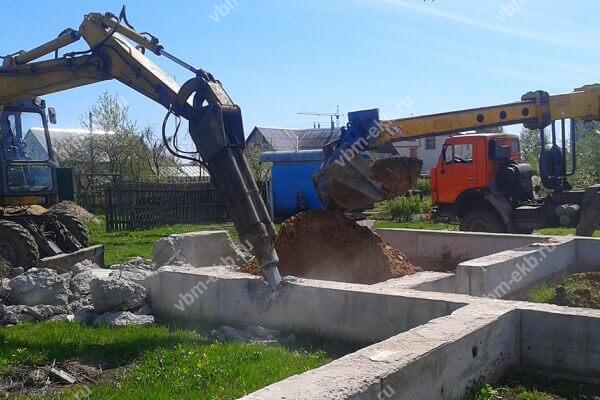 - Удаление частей фундамента вручную или с помощью специализированной техники, такой как экскаватор или демонтажный кран.