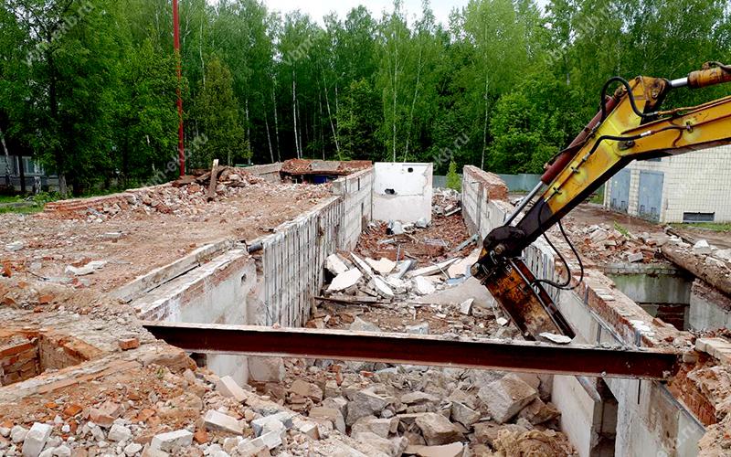 - Механический демонтаж - осуществляется с помощью специальной техники, такой как экскаватор, бульдозер, гидромолот и т.д. Этот метод может быть использован для демонтажа крупных фундаментов из железобетона, армированного бетона и других материалов.