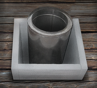 - создают потолочно-проходной узел — для этого в кровле изготавливают квадратное отверстие, в него вставляют короб, изготовленный из огнестойких плит, сквозь него строго вертикально пропускают трубу, всю конструкцию делают герметичной, а при необходимости оставшееся пространство заполняют сыпучей изоляцией;