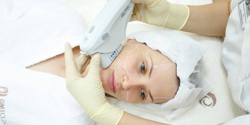 Поверхность кожи очищают, наносят гель для ультразвука, намечают линии. По разметке при помощи датчиков прорабатывают слои мягких тканей. Врач перемещает по поверхности ручной аппарат на выбранной зоне шеи, лица. Он видит место работы на экране, регулирует уровень воздействия. Устройство передает ультразвуковую энергию на нужную глубину.
