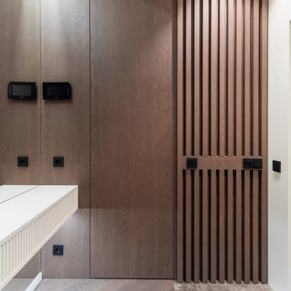 Ещё одним плюсом, который стоит отметить в процессе использования стеновых панелей МДФ, является возможность закрытия различных коммуникаций. Это могут быть как провода, так и трубы, посторонние взгляды которым точно не нужны, однако и оперативный доступ к ним вполне реально обеспечить.