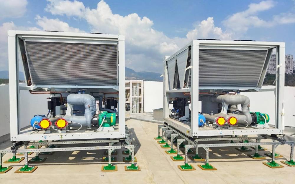- Для VRF-систем и чиллеров. Специализированные комплексы из нескольких стоек с усиленными опорными площадками необходимы для тяжелого инженерного оборудования массой до 1,5 тонн.