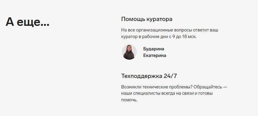 - Карьерная консультация, помощь в поиске работы после обучения.