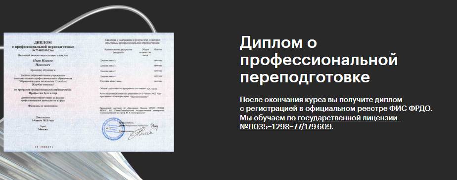 Завершив курс, вы сможете поднять уровень своей заработной платы или начать карьеру в качестве фрилансера. Кроме того, будет выдан официальный диплом, подтверждающий успешное окончание курса.