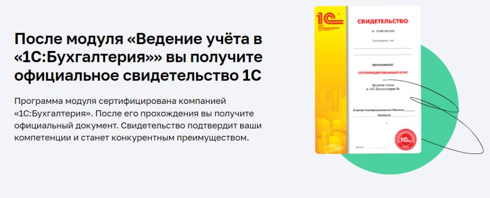 По завершении обучения Вы получите два документа - сертификат Skillbox и свидетельство о прохождении курса от фирмы 1С.