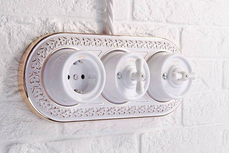 Латунные или медные выключатели с накладками из фарфора или бакелита станут настоящим украшением комнаты. Они прекрасно сочетаются с антикварной мебелью и винтажными аксессуарами, создавая целостный образ.