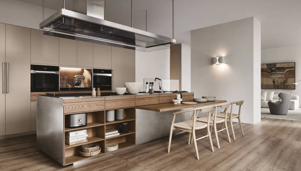 Каждая модель Valcucine оснащена продуманными системами хранения, которые делают использование кухни максимально удобным. Выдвижные панели и подъёмные механизмы позволяют легко получить доступ к необходимым предметам и также легко скрыть их, когда они не используются.