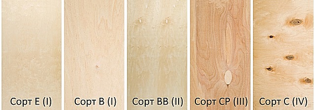 Фанера делится на сортность в зависимости от количества и размера дефектов на поверхности.