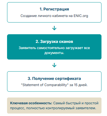 В Соединенном Королевстве признанием занимается организация UK ENIC. Основная услуга — выдача «Statement of Comparability» (Сертификат о сопоставимости). Процедура полностью инициируется заявителем онлайн и не требует отправки документов из вуза. Вы просто загружаете сканы диплома, приложения и их сертифицированного перевода.