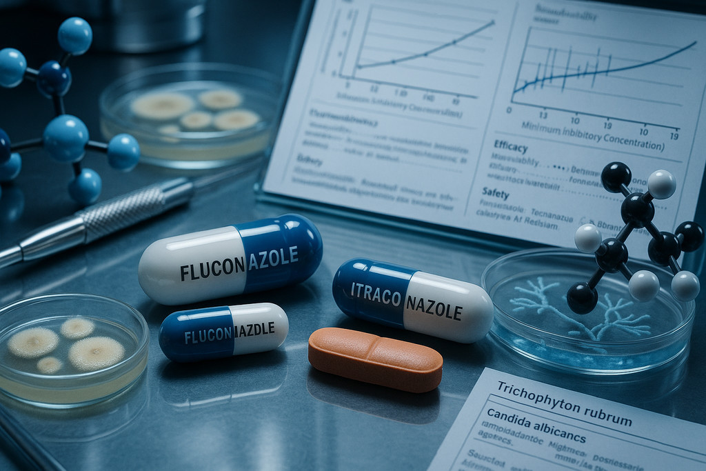 Азолы составляют 68% назначений системной противогрибковой терапии дерматомикозов в клинической практике согласно данным Европейской академии дерматологии и венерологии за 2024 год. Механизм действия основан на ингибировании фермента 14α-деметилазы, который катализирует превращение ланостерола в эргостерол — ключевой компонент клеточной мембраны грибов. Флуконазол демонстрирует высокую активность против дрожжевых грибов рода Candida и некоторых дерматофитов, тогда как итраконазол обладает расширенным спектром с эффективностью против Trichophyton spp., Microsporum spp. и плесневых грибов. Компромисс азолов заключается в потенциальном лекарственном взаимодействии через систему цитохрома P450: итраконазол является мощным ингибитором изоферментов CYP3A4 и требует проверки совместимости с более чем 40 препаратами различных групп.