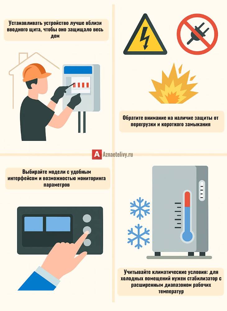 Каждый параметр напрямую влияет на то, насколько эффективно будет работать стабилизатор в условиях вашего дома.