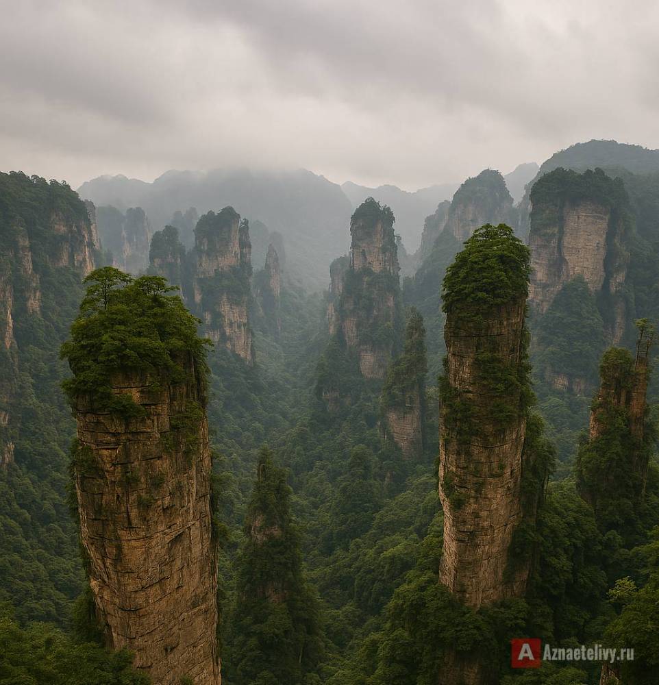 Чжанцзяцзе - это национальный парк с сотнями каменных колонн, которые поднимаются на сотни метров вверх. В туманную погоду они словно парят в воздухе, а в солнечные дни создают невероятные контрасты света и тени. Здесь можно пройти по стеклянным мостам, подняться на смотровые площадки, увидеть водопады, ущелья и леса, которые выглядят так, будто их нарисовал художник-фантаст.