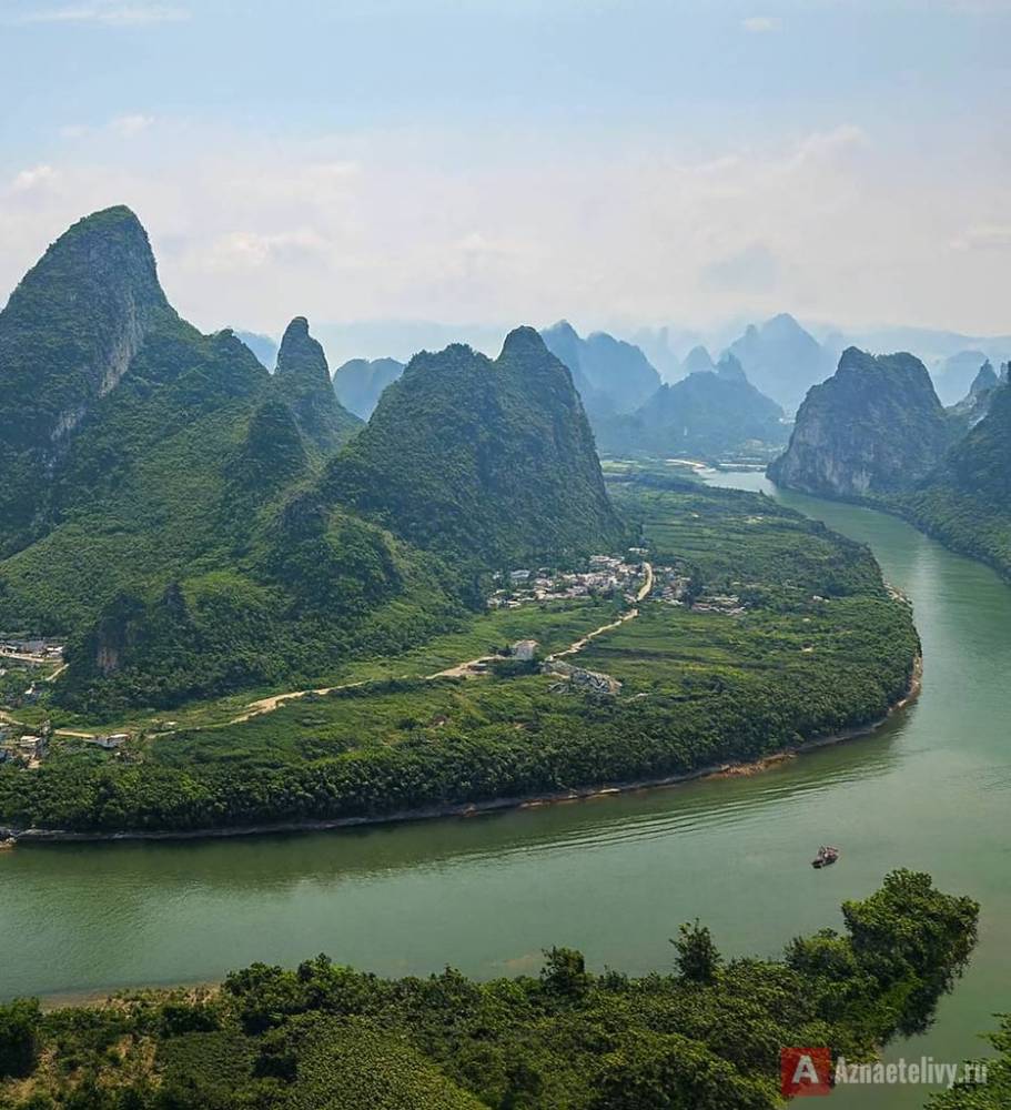 Главная особенность региона - уникальные карстовые холмы, которые поднимаются над землёй словно гигантские зелёные свечи. Они хаотично разбросаны по долинам, создавая ощущение, что природа решила поиграть в шахматы гигантскими фигурами. Между холмами течёт река Ли, спокойная, зеркальная, отражающая в себе туман и мягкий свет.