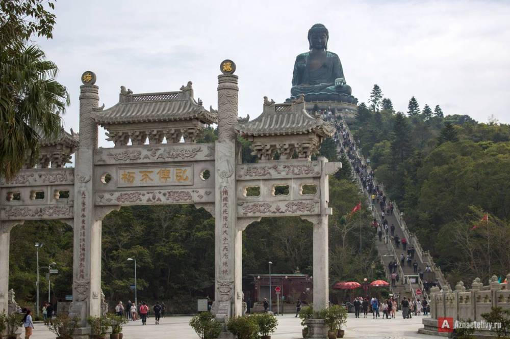 Большой Будда на острове Лантау - одно из самых впечатляющих духовных мест в Азии. Огромная бронзовая статуя высотой более 30 метров возвышается на вершине горы, и чтобы добраться до неё, нужно преодолеть длинную лестницу или подняться по канатной дороге с панорамными видами.
