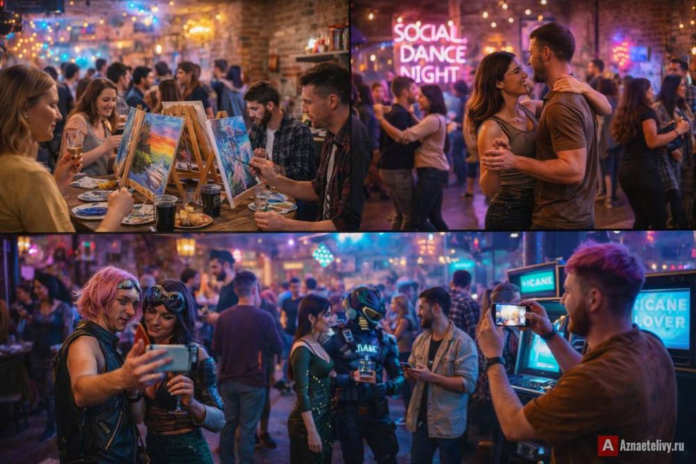 - Атмосфера, а не только действие. Современные тусовки - это не только то, что происходит, но и то, как это происходит. Люди выбирают атмосферу: уют бара, энергию танцевальной площадки, камерность кино‑клуба, драйв интеллектуальной игры. Атмосфера становится частью опыта, который хочется прожить и запомнить.