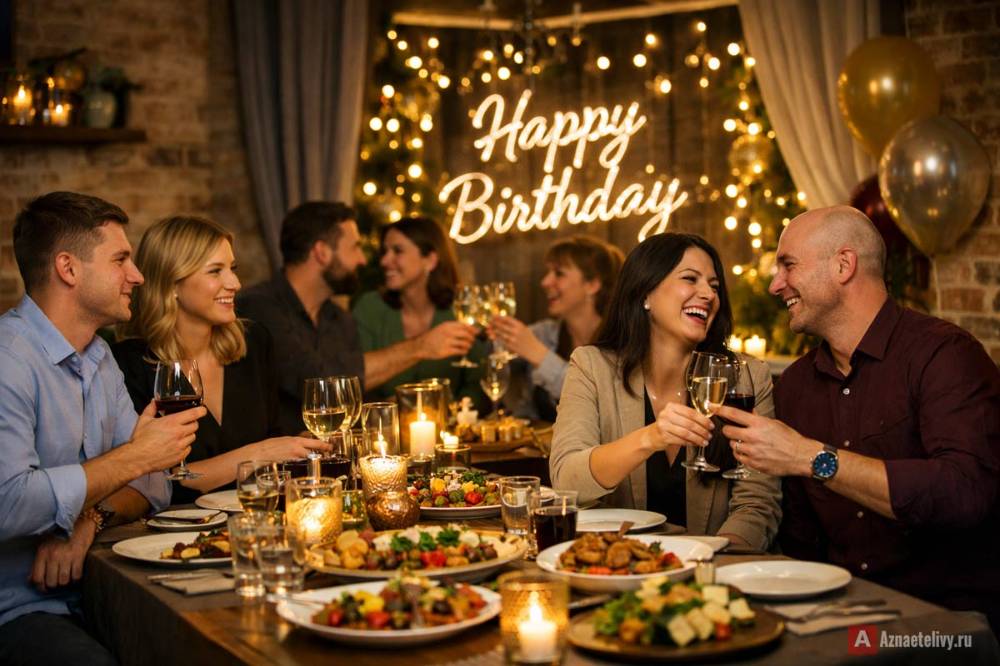 При этом ресторанный формат не обязательно означает официальность. Небольшая компания позволяет сохранить живую атмосферу, спокойно общаться и не чувствовать себя на формальном банкете. Такой вариант часто выбирают для смешанных компаний, где есть гости разного возраста и с разными ожиданиями от праздника.